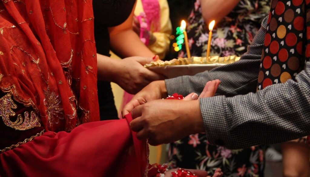 - Held one or two nights before the wedding, the bride’s family gathers for a farewell ceremony.